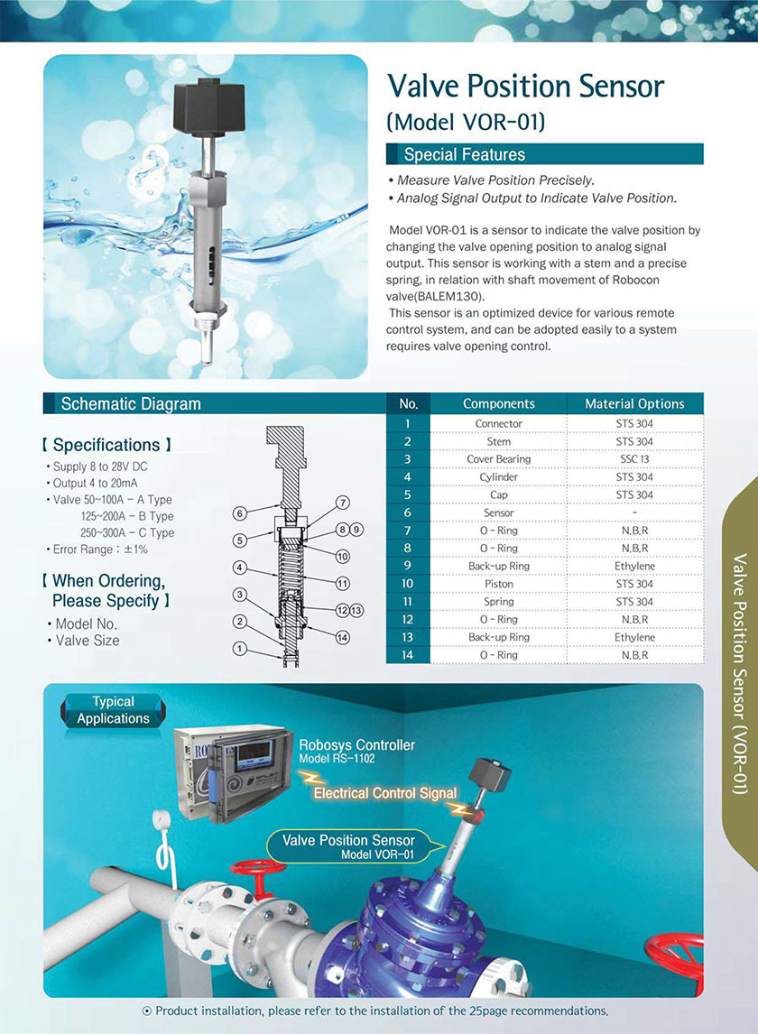 Trang chủ >Van tự vận hành >Van đk cho ngành nước > Bộ Cảm Biến Tỷ Lệ Đóng Mở Của Van Model VOR - 01 (Balem)