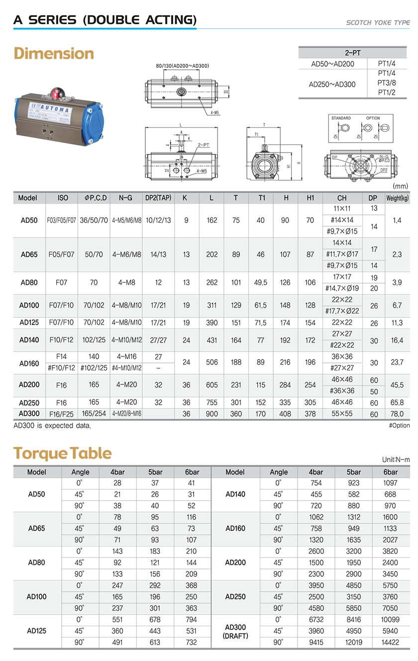 Bộ tác động khí nén AD (double acting) - Automa