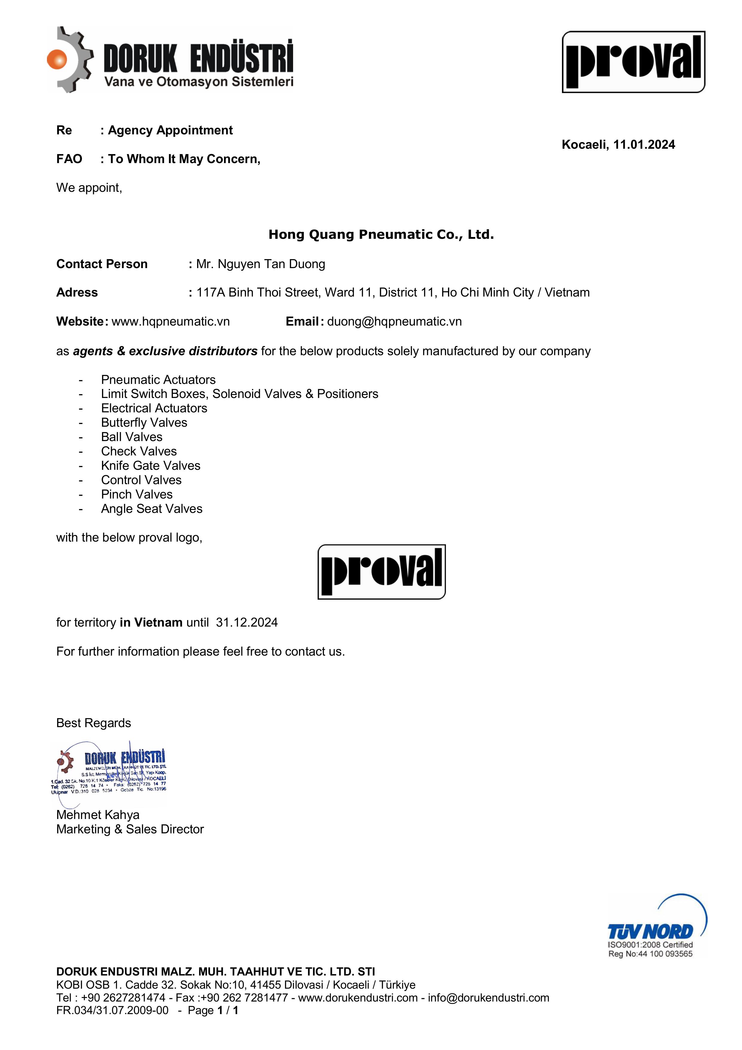 Hiện nay, HQP là đại lý độc quyền tại Việt Nam của thương hiệu Pneumax (Ý) và Proval (Thổ Nhĩ Kỳ) – những nhà sản xuất uy tín trong lĩnh vực khí nén và van công nghiệp. Việc hợp tác trực tiếp với các hãng giúp chúng tôi đảm bảo sản phẩm chính hãng, thông tin kỹ thuật chính xác, khả năng cung ứng ổn định và hỗ trợ kỹ thuật đồng bộ, đáp ứng tốt các yêu cầu khắt khe của hệ thống công nghiệp.