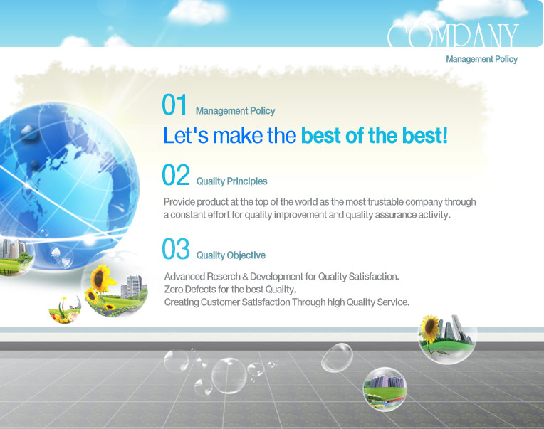 Provide products at the top of the world as the most trustable company through a constant effort for quality improvement and quality assurance activity