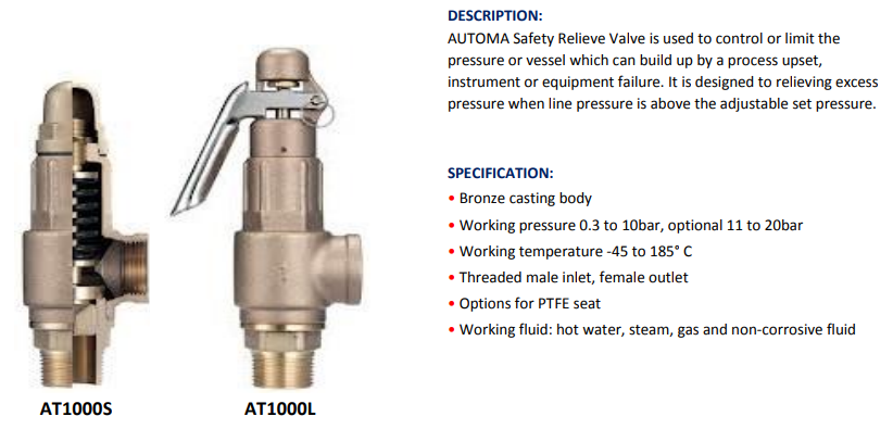 Van giảm áp an toàn AUTOMA được sử dụng để kiểm soát hoặc hạn chế áp suất hoặc bình chứa có thể tích tụ do rối loạn quá trình, sự cố của dụng cụ hoặc thiết bị. Nó được thiết kế để giảm bớt sự dư thừa áp suất khi áp suất đường dây cao hơn áp suất cài đặt có thể điều chỉnh.