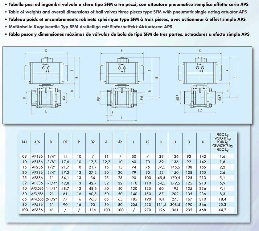 Trang chủ >Van điều khiển >Bằng khí nén > Van bi 3 mảnh điều khiển khí nén (single acting, lắp ren) 16SF - Valvole Hofmann