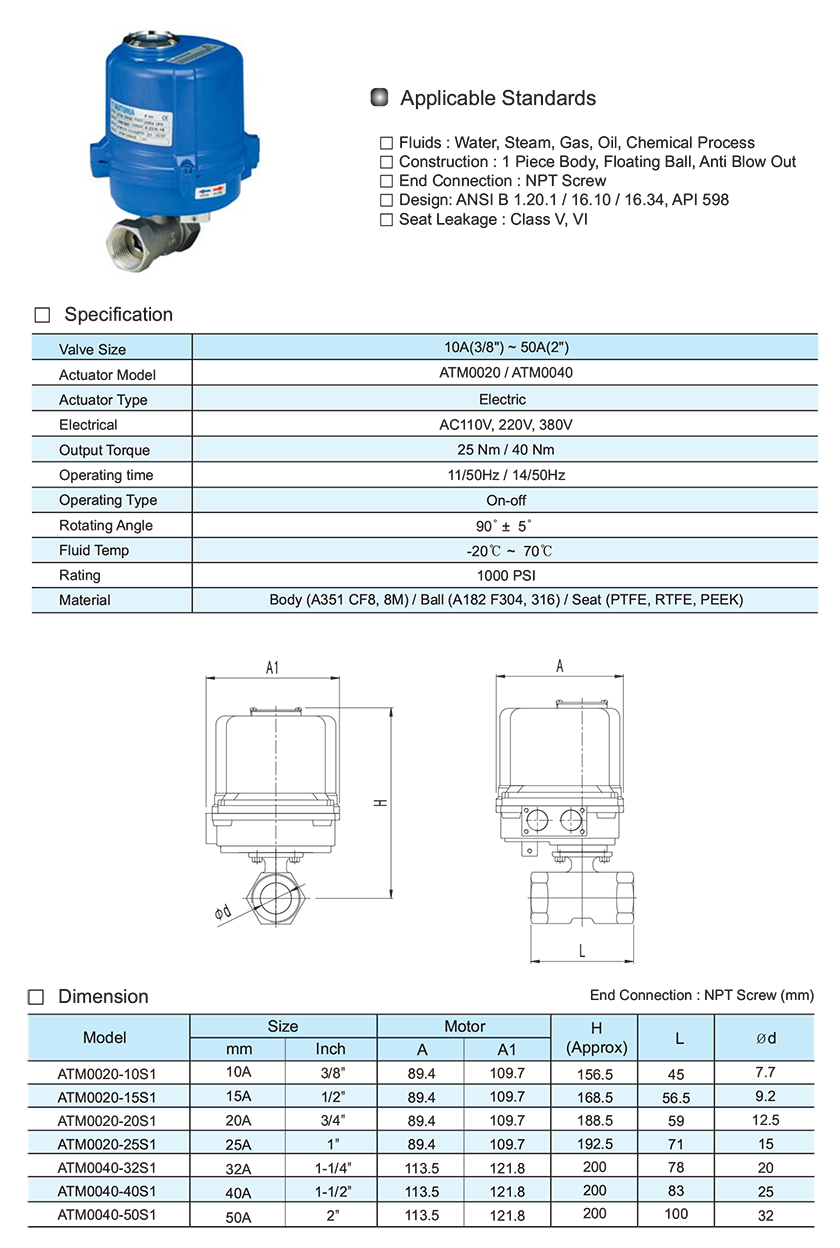 Trang chủ >Van điều khiển >Bằng điện > Van bi điều khiển điện (lắp ren) - Automa