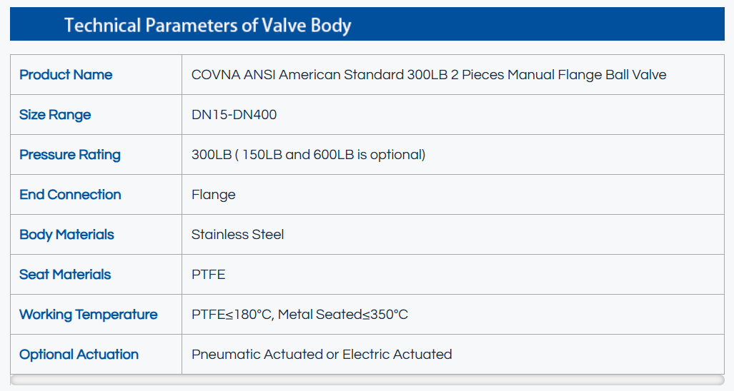 Van bi mặt bích 2 chiều 2 chiếc có nhiều kích thước để lựa chọn. Kích thước bình thường nằm trong khoảng từ 1/2" đến 12". Kích thước đặc biệt có thể được tùy chỉnh. Tiêu chuẩn ANSI, JIS, DIN và GB có sẵn. Thiết kế van bi nổi với tuổi thọ dài hơn. Cung cấp giải pháp cho các ứng dụng cần kết nối mặt bích. Cổng đầy đủ, dễ cài đặt và dễ sửa chữa.
