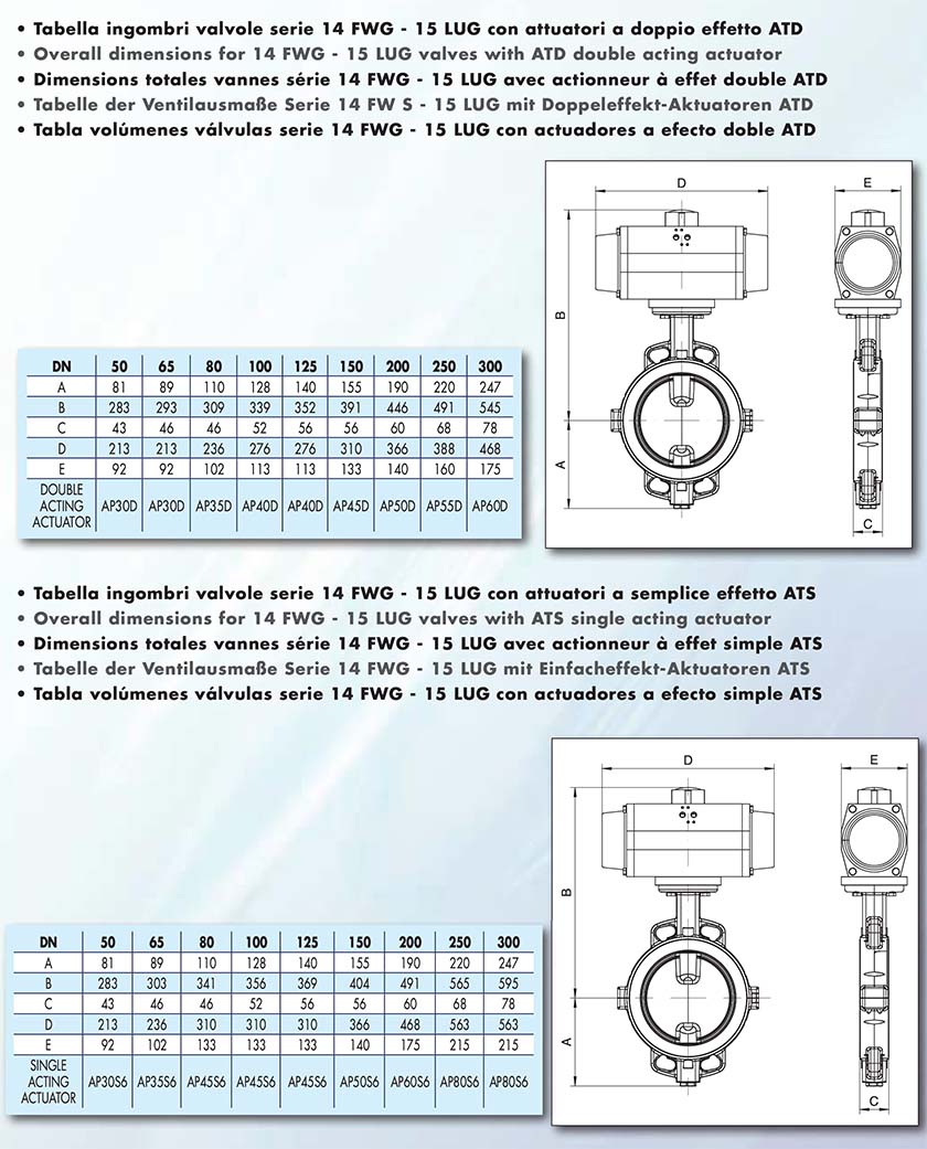 Van bướm điều khiển khí nén 14FWG - Valvole Hofmann
