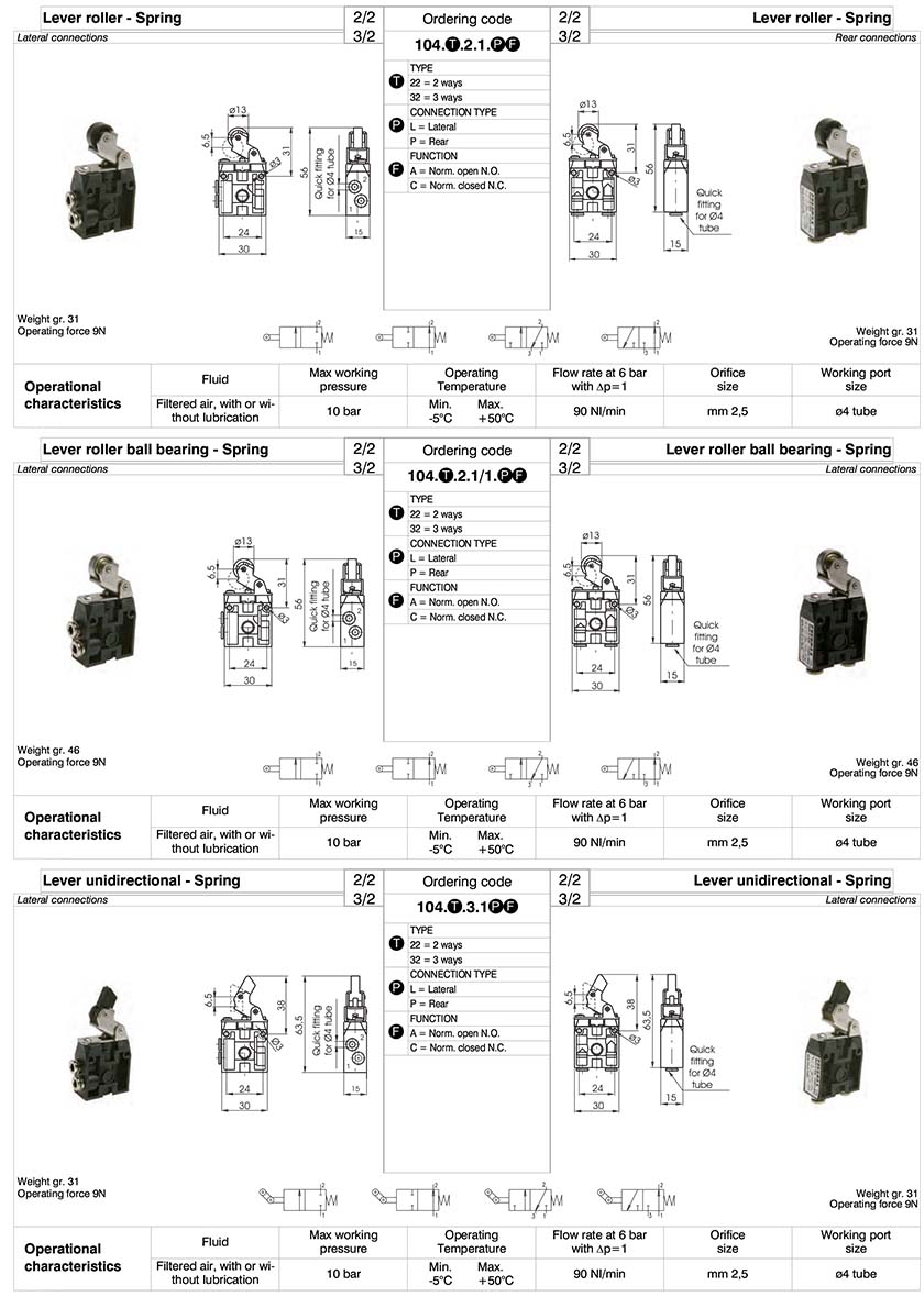 Trang chủ >Khí nén Pneumax >Van cơ > Van cơ khí nén series 104 lever roller - spring