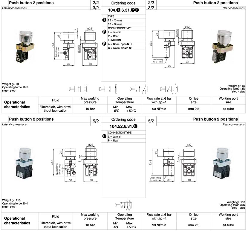 Trang chủ >Khí nén Pneumax >Van cơ > Van cơ khí nén series 104 push button 2 positions