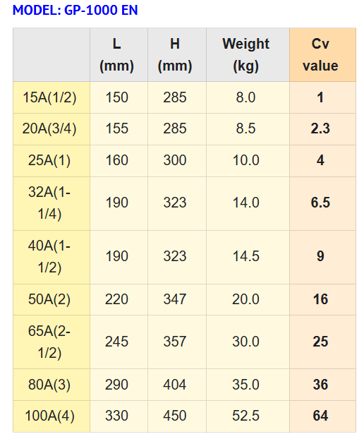 Ứng dụng: Hơi nước nóng. Model: GP-1000
