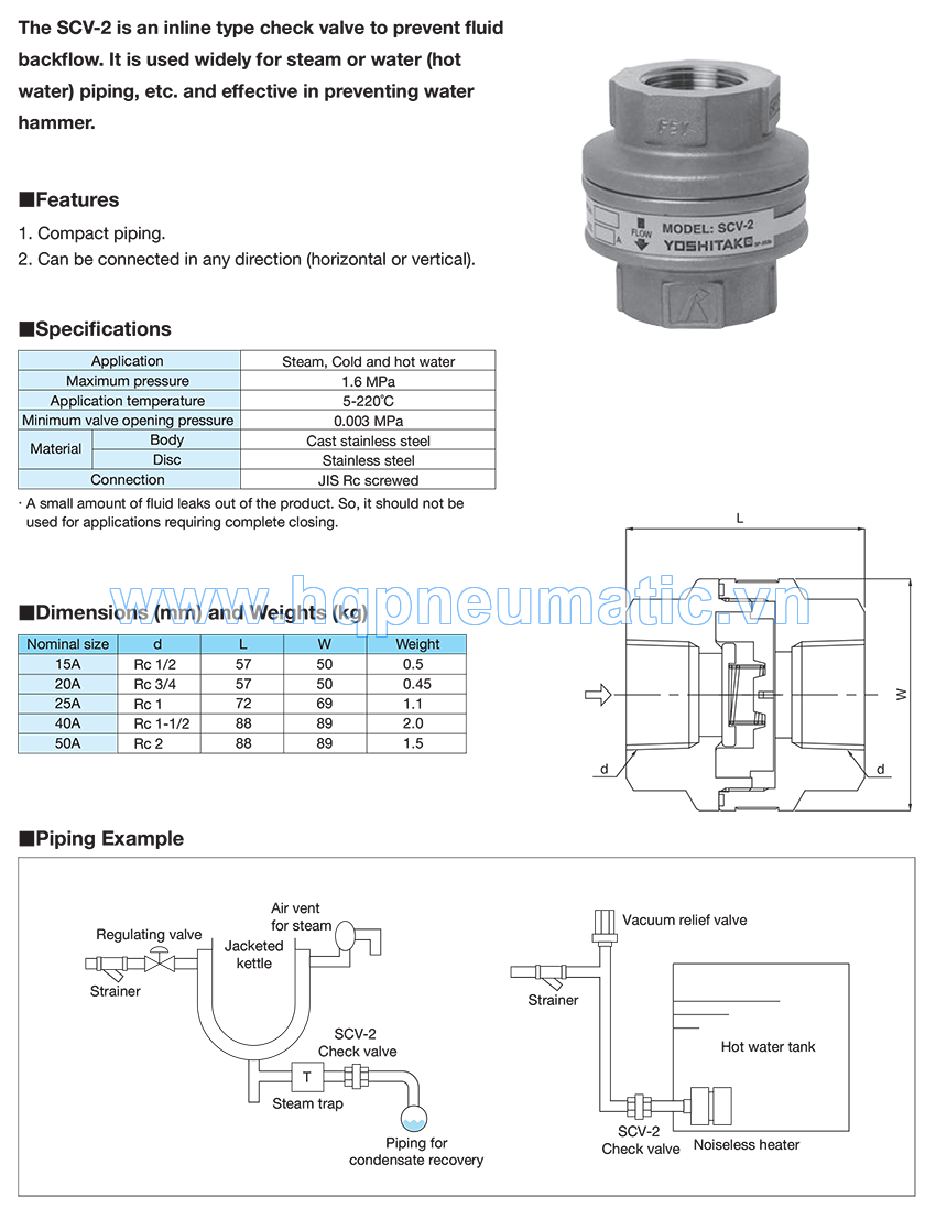 Trang chủ >Van cơ >Van một chiều > Van một chiều SCV-2 - Yoshitake
