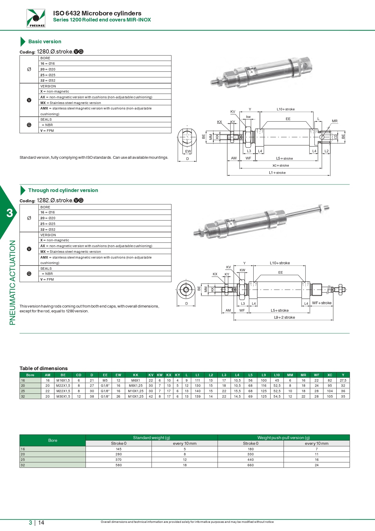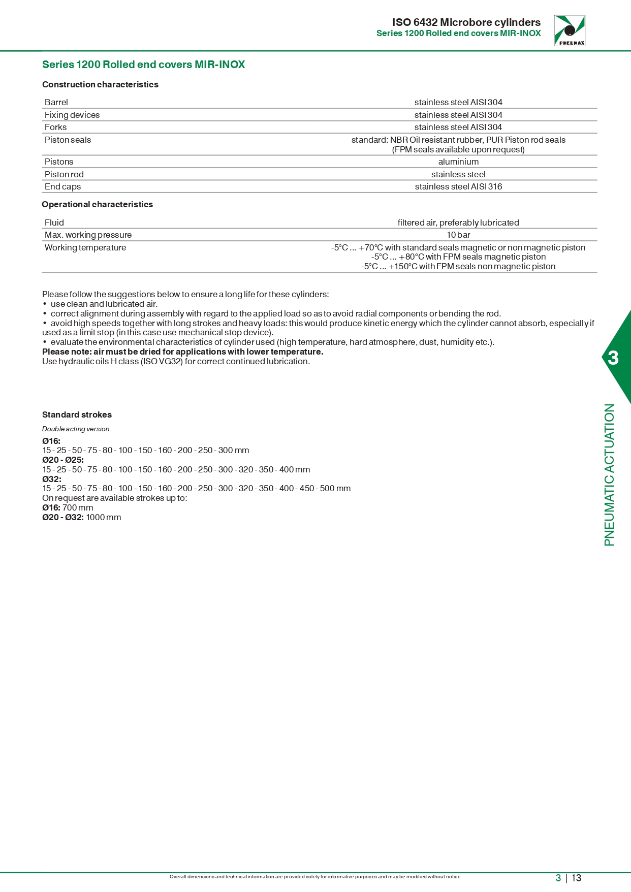 Microcylinders theo tiêu chuẩn ISO 6432 – Series “MIR-INOX” 1200